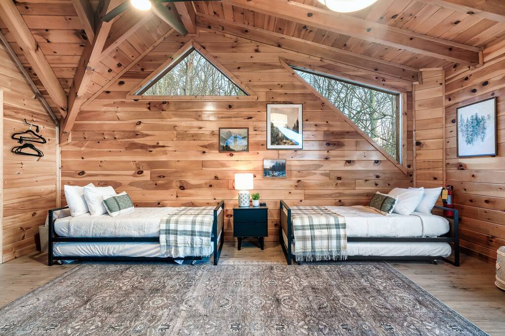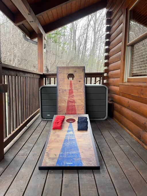 FREE access to community pool and catch & release fishing pond. The pool is open from Memorial day until Labor day. The fishing pond is open year round. Free access for our guests! Note: The driveway is very steep, has potholes and may be a little intimidating the first time you drive up it. ★LIVING ROOM ★ Gas fireplace 65’’ Big screen ROKU TV w/ access to all of your favorite streaming channels like Netflix, Hulu, Amazon Prime, Disney+, Max, and others for you to use with your own accounts Queen sofa sleeper with memory foam mattress (So Comfortable and sleeps 2) BlueAir air purifier. It's set to auto so it runs continuously and it's so quiet, you won't even notice it's in the room! Board games, playing cards and checkers Amazing Mountain and Valley Views ★ DECK ★ 4-person hot tub Seating tables with chairs or barstools. Tall Adirondack Chairs (Great for viewing the mountains, valley and wildlife) Mountain and valley views ★ KITCHEN & DINING ★ Fully equipped w/ Keurig single pod and Mr Coffee drip coffee makers, french press, cooking utensils, pots and pans, dishes, mugs, glasses, SS wine/hot beverage cups, silverware, toaster, slow cooker, Ninja blender, and tea kettle. Enjoy fresh drinking water from the Reverse Osmosis water filtration system, (Located to the left of the Kitchen faucet). A starter package of toilet paper, paper towels, trash bags, dishwasher and laundry pods are provided. You may need to buy more for longer stays. 6-person dining table and counter seating for 4. Laundry closet w/ stackable washer and dryer. ★ BEDROOM SUITE 1 ★ King bed (Sleeps 2 Adults). Private bathroom with tub/shower. Reading nook. BlueAir air purifier. It's set to auto so it runs continuously and it's so quiet, you won't even notice it's in the room! 55’’ ROKU TV (same system and access as Living Room TV, (Provide your own passwords). ★ Loft / BEDROOM 2 ★ 2 - Twin Trundle Beds (Sleeps 4 Adults). Private bathroom with stand up shower. 2-person 60+ game arcade game table. 55’’ ROKU TV (same system and access as Living Room TV, (Provide your own passwords). ★ BATHROOMS ★ Both bathrooms feature a stand up shower or tub/shower combo, vanity, and toilet. Each bathroom is connected to a bedroom or the loft. The following are also included. Hairdryer, Vanity mirror, Make-up removal cloths, Bath towels and wash cloths. ★Guest access★ Access to the entire cabin except for crawl space storage. Check yourself in with a smart lock with your own unique code. Door code will be sent to you 24 hours before check in. The maximum number of people staying at the cabin is 8 total including adults and children. ★ GETTING TO THE CABIN ★ The roads are paved the entire route except the last 100’ of the driveway, it’s gravel for approximately 100’. The driveway is very steep, has potholes and is a little intimidating the first time you drive up it. While some may be a little nervous on their first time up the driveway, most people get used to it and agree that the view is well worth the climb! The main road to get to the cabin like most roads in the Smokey Mountains will be winding and narrow in places (still room for two cars to pass each other). We're at the top of the mountain road from where you get to enjoy the beautiful view. On average, it may take 10 minutes to get to the nearest supermarket/grocery store, so plan accordingly. 4-wheel drive/AWD is not necessary but highly recommended in icy or inclement weather conditions. ★ PARKING ★ 4 vehicle maximum. We do not advise bringing a trailer behind your vehicle due to the narrow winding mountain roads and lack of space to park a long trailer/vehicle combo at the cabin. Other things to note: ★ CHECK-IN/OUT TIMES ★ * Check-in: 4 pm on day of arrival * Check-out: 11 am of day of departure * Quiet time: 10 pm-8 am ★ KNOW BEFORE YOU BOOK ★ 8-person maximum occupancy No parties or events. We are dog friendly for well behaved and house trained furry family members. The pet fee is $100 for up to 2 dogs. Additional dogs need approval. You will be charged $100 for each unregistered pet that is brought into the cabin. Do not leave your pets unattended at any time! No smoking or vaping of any kind inside the cabin (no exceptions) If there is evidence of smoking, you will be charged a minimum of $500 for additional cleaning and remediation fees. No refunds for weather/natural disasters/power outages/acts of god/other things that are beyond our control. A starter package of toilet paper, paper towels, trash bags, dishwasher and laundry pods are provided as well as a few K-cups and ground coffee to get you started. You may need to buy more for longer stays. ★ OTHER INFO ★ The fireplace is shut down April 1 to October 1 as with every cabin in the area. This is a gas only fireplace. Do not attempt to put wood or any other material in the fireplace. You are in the Smokey Mountains and may see and hear critters, bears, bugs, spiders, etc. Squirrels and other critters can and will get on the roof of the cabin from time to time. The cabin roof is metal so you will likely hear anything that gets up there including rain drops. Bears are dangerous. If you see a bear, stay inside! Do not feed bears or any other wild animals. Do not store food or food wrappers inside your vehicle. Bears can and will break in to vehicles to get food. If you’re lucky enough to see a bear near the cabin, please don’t ask us for a refund! You’ve already been made aware of the possibility. In fact, if you do see a bear near the cabin, we might have to charge you extra for the awesome experience! Please review our cancellation policy. We do not offer refunds for inclement weather, power/internet outages or any issues that are outside of our control. Our cabin cleaners are exceptional. We receive detailed photos before each guest so we can ensure that your stay will be great and held to the highest standards of cleanliness. If any issues arise, 