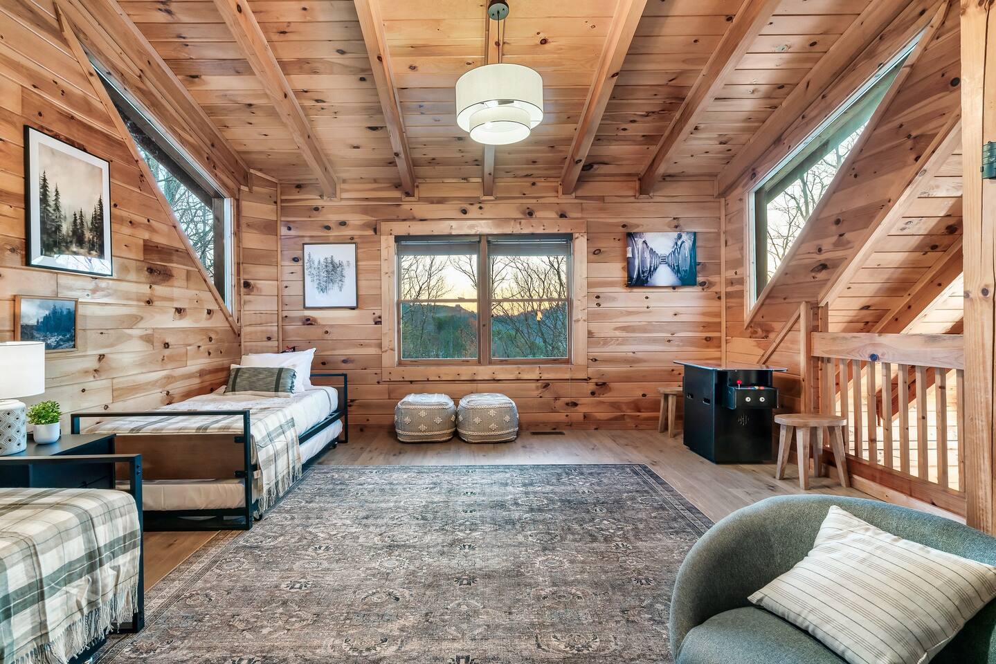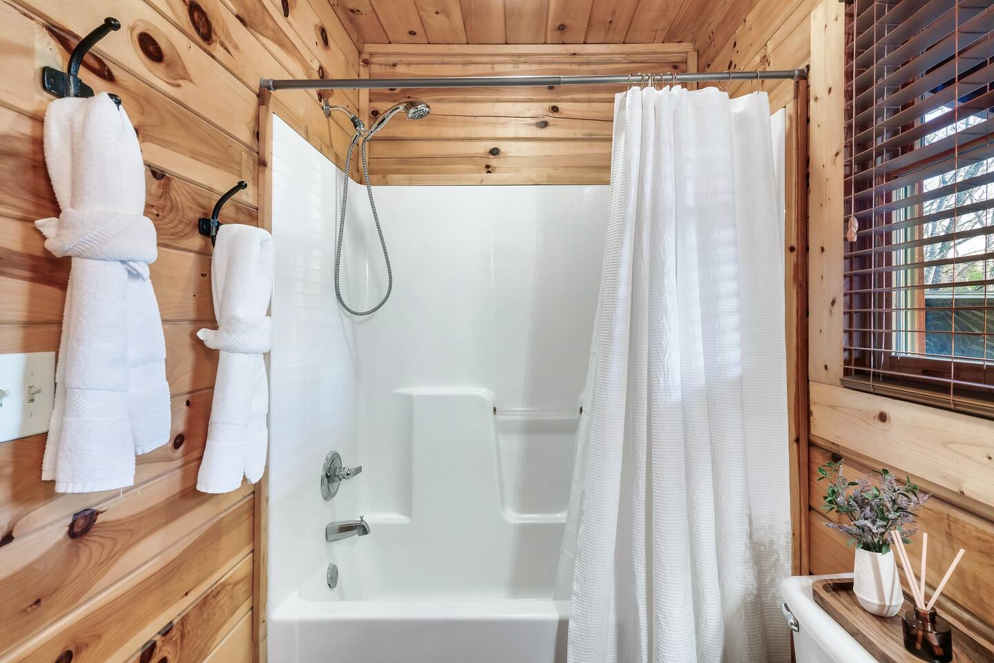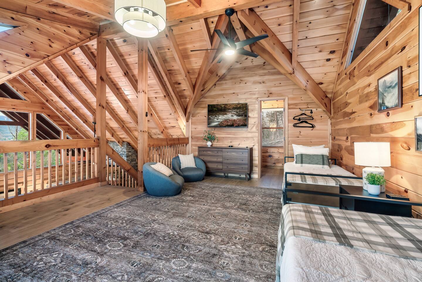 FREE access to community pool and catch & release fishing pond. The pool is open from Memorial day until Labor day. The fishing pond is open year round. Free access for our guests! Note: The driveway is very steep, has potholes and may be a little intimidating the first time you drive up it. ★LIVING ROOM ★ Gas fireplace 65’’ Big screen ROKU TV w/ access to all of your favorite streaming channels like Netflix, Hulu, Amazon Prime, Disney+, Max, and others for you to use with your own accounts Queen sofa sleeper with memory foam mattress (So Comfortable and sleeps 2) BlueAir air purifier. It's set to auto so it runs continuously and it's so quiet, you won't even notice it's in the room! Board games, playing cards and checkers Amazing Mountain and Valley Views ★ DECK ★ 4-person hot tub Seating tables with chairs or barstools. Tall Adirondack Chairs (Great for viewing the mountains, valley and wildlife) Mountain and valley views ★ KITCHEN & DINING ★ Fully equipped w/ Keurig single pod and Mr Coffee drip coffee makers, french press, cooking utensils, pots and pans, dishes, mugs, glasses, SS wine/hot beverage cups, silverware, toaster, slow cooker, Ninja blender, and tea kettle. Enjoy fresh drinking water from the Reverse Osmosis water filtration system, (Located to the left of the Kitchen faucet). A starter package of toilet paper, paper towels, trash bags, hand soap, shampoo, conditioner, dishwasher and laundry pods are provided. You may need to buy more for longer stays. 6-person dining table and counter seating for 4. Laundry closet w/ stackable washer and dryer. ★ BEDROOM SUITE 1 ★ King bed (Sleeps 2 Adults). Private bathroom with tub/shower. Reading nook. BlueAir air purifier. It's set to auto so it runs continuously and it's so quiet, you won't even notice it's in the room! 55’’ ROKU TV (same system and access as Living Room TV, (Provide your own passwords). ★ Loft / BEDROOM 2 ★ 2 - Twin Trundle Beds (Sleeps 4 Adults). Private bathroom with stand up shower. 2-person 60+ game arcade game table. 55’’ ROKU TV (same system and access as Living Room TV, (Provide your own passwords). ★ BATHROOMS ★ Both bathrooms feature a stand up shower or tub/shower combo, vanity, and toilet. Each bathroom is connected to a bedroom or the loft. The following are also included. Hairdryer, Vanity mirror, Make-up removal cloths, Bath towels and wash cloths. ★Guest access★ Access to the entire cabin except for crawl space storage. Check yourself in with a smart lock with your own unique code. Door code will be sent to you 24 hours before check in. The maximum number of people staying at the cabin is 8 total including adults and children. ★ GETTING TO THE CABIN ★ The roads are paved the entire route except the last 100’ of the driveway, it’s gravel for approximately 100’. The driveway is very steep, has potholes and is a little intimidating the first time you drive up it. While some may be a little nervous on their first time up the driveway, most people get used to it and agree that the view is well worth the climb! The main road to get to the cabin like most roads in the Smokey Mountains will be winding and narrow in places (still room for two cars to pass each other). We're at the top of the mountain road from where you get to enjoy the beautiful view. On average, it may take 10 minutes to get to the nearest supermarket/grocery store, so plan accordingly. 4-wheel drive/AWD is not necessary but highly recommended in icy or inclement weather conditions. ★ PARKING ★ 4 vehicle maximum. We do not advise bringing a trailer behind your vehicle due to the narrow winding mountain roads and lack of space to park a long trailer/vehicle combo at the cabin. Other things to note: ★ CHECK-IN/OUT TIMES ★ * Check-in: 4 pm on day of arrival * Check-out: 11 am of day of departure * Quiet time: 10 pm-8 am ★ KNOW BEFORE YOU BOOK ★ All guests must be at least 25 years old to book (children with parents are welcomed) 8-person maximum occupancy No parties or events. We are dog friendly for well behaved and house trained furry family members. The pet fee is $100 for up to 2 dogs. Additional dogs need approval. You will be charged $100 for each unregistered pet that is brought into the cabin. Do not leave your pets unattended at any time! No smoking or vaping of any kind inside the cabin (no exceptions) If there is evidence of smoking, you will be charged a minimum of $500 for additional cleaning and remediation fees. No refunds for weather/natural disasters/power outages/acts of god/other things that are beyond our control. A starter package of toilet paper, paper towels, trash bags, dishwasher and laundry pods are provided as well as a few K-cups and ground coffee to get you started. You may need to buy more for longer stays. ★ OTHER INFO ★ The fireplace is shut down April 1 to October 1 as with every cabin in the area. This is a gas only fireplace. Do not attempt to put wood or any other material in the fireplace. You are in the Smokey Mountains and may see and hear critters, bears, bugs, spiders, etc. Squirrels and other critters can and will get on the roof of the cabin from time to time. The cabin roof is metal so you will likely hear anything that gets up there including rain drops. Bears are dangerous. If you see a bear, stay inside! Do not feed bears or any other wild animals. Do not store food or food wrappers inside your vehicle. Bears can and will break in to vehicles to get food. If you’re lucky enough to see a bear near the cabin, please don’t ask us for a refund! You’ve already been made aware of the possibility. In fact, if you do see a bear near the cabin, we might have to charge you extra for the awesome experience! Please review our cancellation policy. We do not offer refunds for inclement weather, power/internet outages or any issues that are outside of our control. Our cabin cleaners are exceptional. We receive detailed photos before each gues