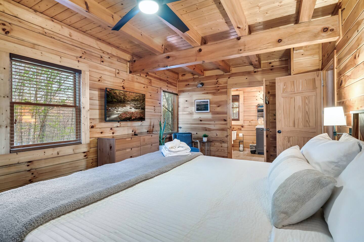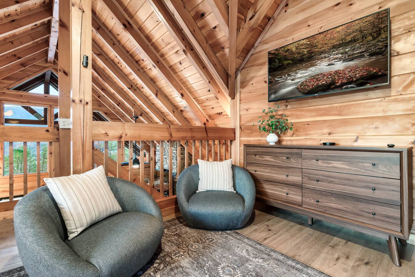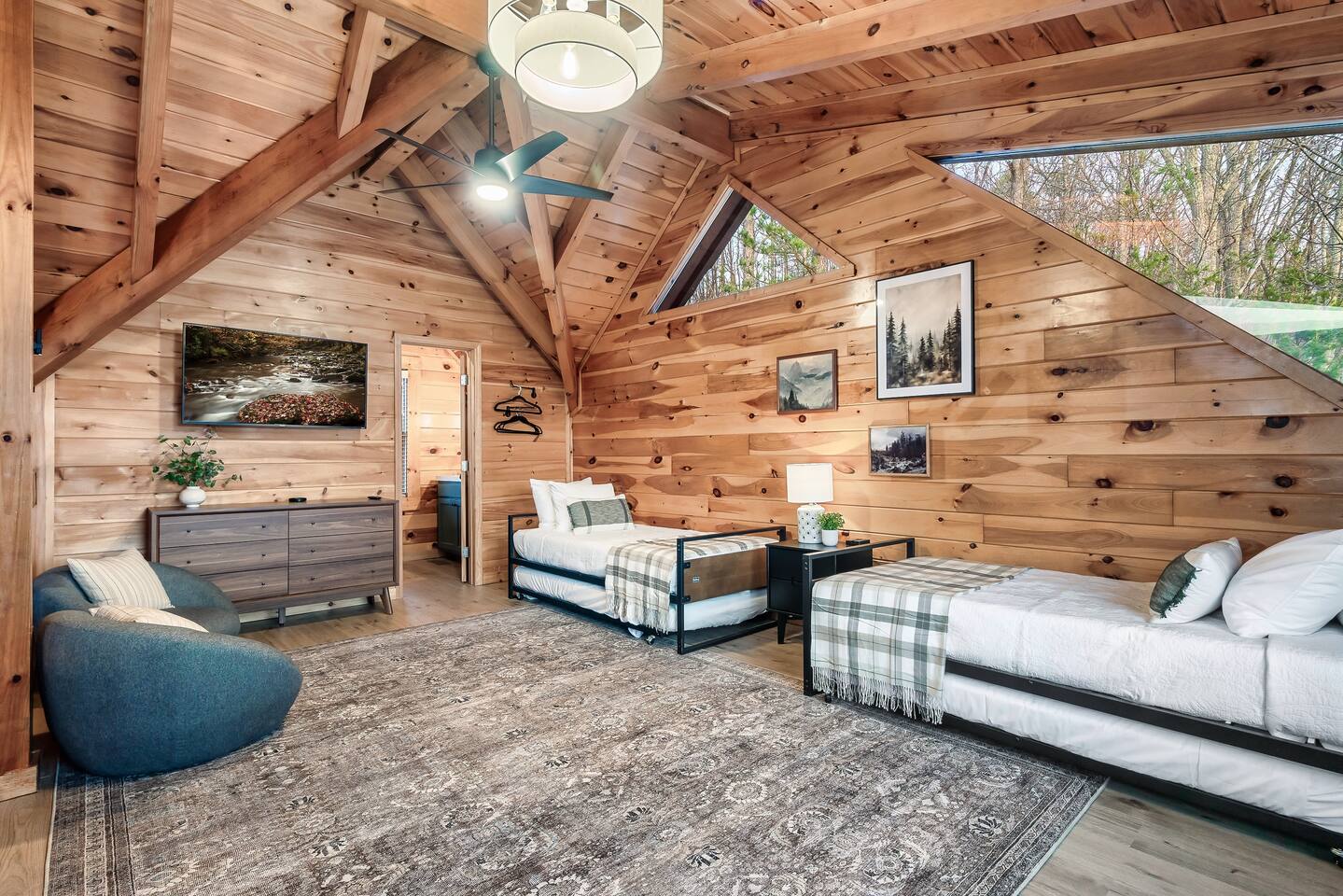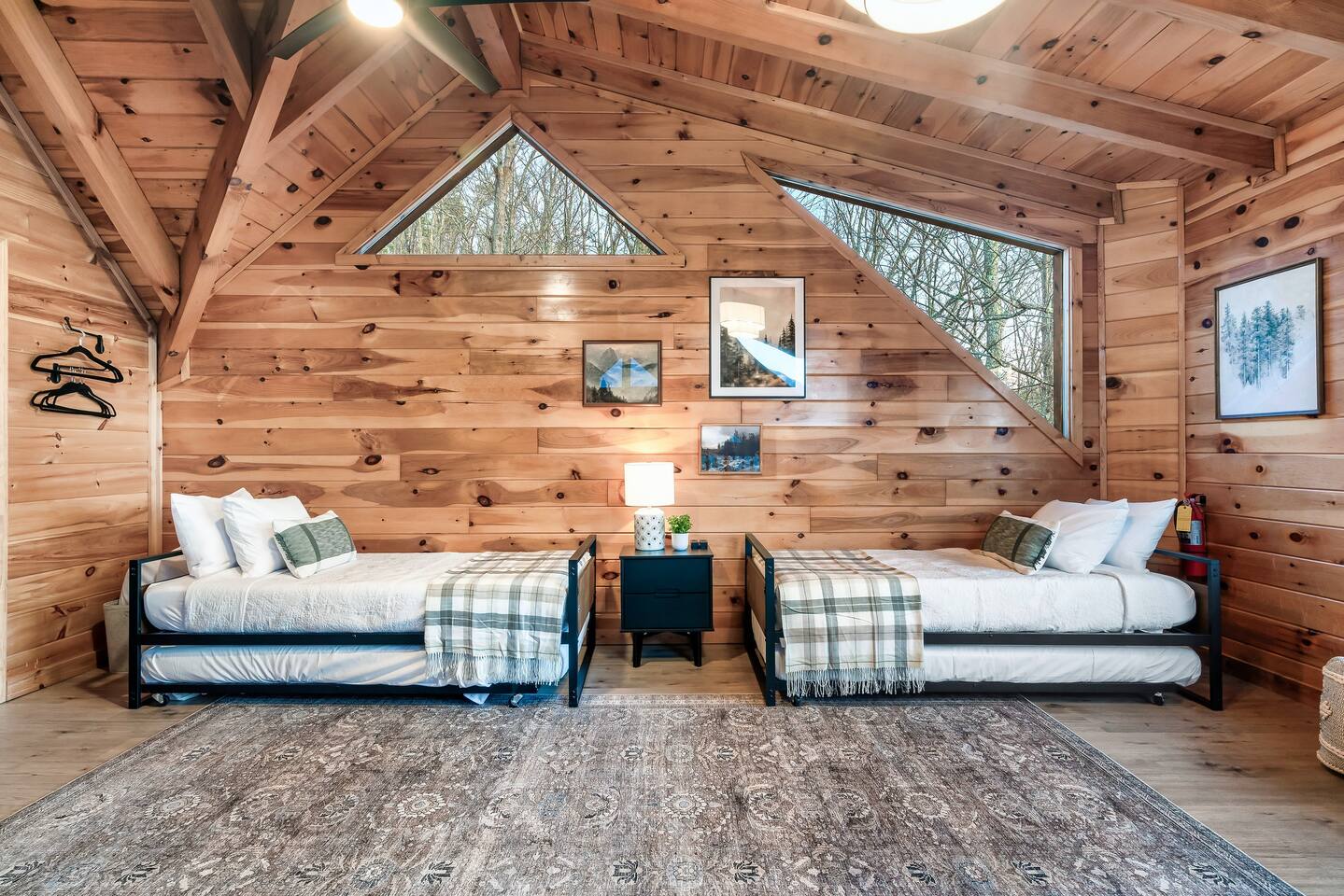 FREE access to community pool and catch & release fishing pond. The pool is open from Memorial day until Labor day. The fishing pond is open year round. Free access for our guests! Note: The driveway is very steep, has potholes and may be a little intimidating the first time you drive up it. ★LIVING ROOM ★ Gas fireplace 65’’ Big screen ROKU TV w/ access to all of your favorite streaming channels like Netflix, Hulu, Amazon Prime, Disney+, Max, and others for you to use with your own accounts Queen sofa sleeper with memory foam mattress (So Comfortable and sleeps 2) BlueAir air purifier. It's set to auto so it runs continuously and it's so quiet, you won't even notice it's in the room! Board games, playing cards and checkers Amazing Mountain and Valley Views ★ DECK ★ 4-person hot tub Seating tables with chairs or barstools. Tall Adirondack Chairs (Great for viewing the mountains, valley and wildlife) Mountain and valley views ★ KITCHEN & DINING ★ Fully equipped w/ Keurig single pod and Mr Coffee drip coffee makers, french press, cooking utensils, pots and pans, dishes, mugs, glasses, SS wine/hot beverage cups, silverware, toaster, slow cooker, Ninja blender, and tea kettle. Enjoy fresh drinking water from the Reverse Osmosis water filtration system, (Located to the left of the Kitchen faucet). A starter package of toilet paper, paper towels, trash bags, hand soap, shampoo, conditioner, dishwasher and laundry pods are provided. You may need to buy more for longer stays. 6-person dining table and counter seating for 4. Laundry closet w/ stackable washer and dryer. ★ BEDROOM SUITE 1 ★ King bed (Sleeps 2 Adults). Private bathroom with tub/shower. Reading nook. BlueAir air purifier. It's set to auto so it runs continuously and it's so quiet, you won't even notice it's in the room! 55’’ ROKU TV (same system and access as Living Room TV, (Provide your own passwords). ★ Loft / BEDROOM 2 ★ 2 - Twin Trundle Beds (Sleeps 4 Adults). Private bathroom with stand up shower. 2-person 60+ game arcade game table. 55’’ ROKU TV (same system and access as Living Room TV, (Provide your own passwords). ★ BATHROOMS ★ Both bathrooms feature a stand up shower or tub/shower combo, vanity, and toilet. Each bathroom is connected to a bedroom or the loft. The following are also included. Hairdryer, Vanity mirror, Make-up removal cloths, Bath towels and wash cloths. ★Guest access★ Access to the entire cabin except for crawl space storage. Check yourself in with a smart lock with your own unique code. Door code will be sent to you 24 hours before check in. The maximum number of people staying at the cabin is 8 total including adults and children. ★ GETTING TO THE CABIN ★ The roads are paved the entire route except the last 100’ of the driveway, it’s gravel for approximately 100’. The driveway is very steep, has potholes and is a little intimidating the first time you drive up it. While some may be a little nervous on their first time up the driveway, most people get used to it and agree that the view is well worth the climb! The main road to get to the cabin like most roads in the Smokey Mountains will be winding and narrow in places (still room for two cars to pass each other). We're at the top of the mountain road from where you get to enjoy the beautiful view. On average, it may take 10 minutes to get to the nearest supermarket/grocery store, so plan accordingly. 4-wheel drive/AWD is not necessary but highly recommended in icy or inclement weather conditions. ★ PARKING ★ 4 vehicle maximum. We do not advise bringing a trailer behind your vehicle due to the narrow winding mountain roads and lack of space to park a long trailer/vehicle combo at the cabin. Other things to note: ★ CHECK-IN/OUT TIMES ★ * Check-in: 4 pm on day of arrival * Check-out: 11 am of day of departure * Quiet time: 10 pm-8 am ★ KNOW BEFORE YOU BOOK ★ All guests must be at least 25 years old to book (children with parents are welcomed) 8-person maximum occupancy No parties or events. We are dog friendly for well behaved and house trained furry family members. The pet fee is $100 for up to 2 dogs. Additional dogs need approval. You will be charged $100 for each unregistered pet that is brought into the cabin. Do not leave your pets unattended at any time! No smoking or vaping of any kind inside the cabin (no exceptions) If there is evidence of smoking, you will be charged a minimum of $500 for additional cleaning and remediation fees. No refunds for weather/natural disasters/power outages/acts of god/other things that are beyond our control. A starter package of toilet paper, paper towels, trash bags, dishwasher and laundry pods are provided as well as a few K-cups and ground coffee to get you started. You may need to buy more for longer stays. ★ OTHER INFO ★ The fireplace is shut down April 1 to October 1 as with every cabin in the area. This is a gas only fireplace. Do not attempt to put wood or any other material in the fireplace. You are in the Smokey Mountains and may see and hear critters, bears, bugs, spiders, etc. Squirrels and other critters can and will get on the roof of the cabin from time to time. The cabin roof is metal so you will likely hear anything that gets up there including rain drops. Bears are dangerous. If you see a bear, stay inside! Do not feed bears or any other wild animals. Do not store food or food wrappers inside your vehicle. Bears can and will break in to vehicles to get food. If you’re lucky enough to see a bear near the cabin, please don’t ask us for a refund! You’ve already been made aware of the possibility. In fact, if you do see a bear near the cabin, we might have to charge you extra for the awesome experience! Please review our cancellation policy. We do not offer refunds for inclement weather, power/internet outages or any issues that are outside of our control. Our cabin cleaners are exceptional. We receive detailed photos before each gues