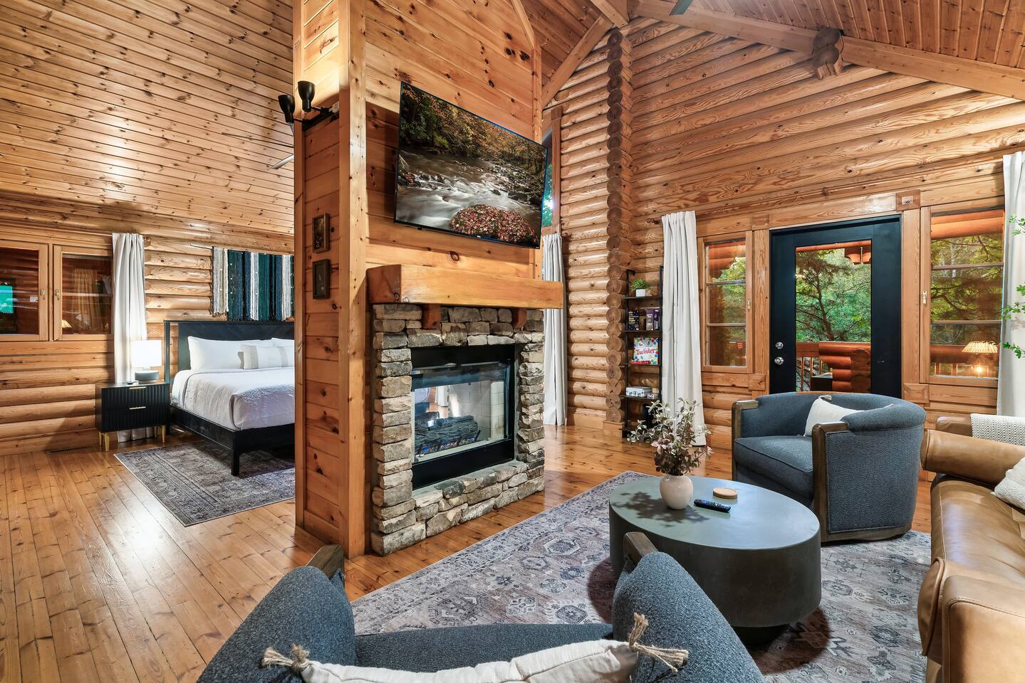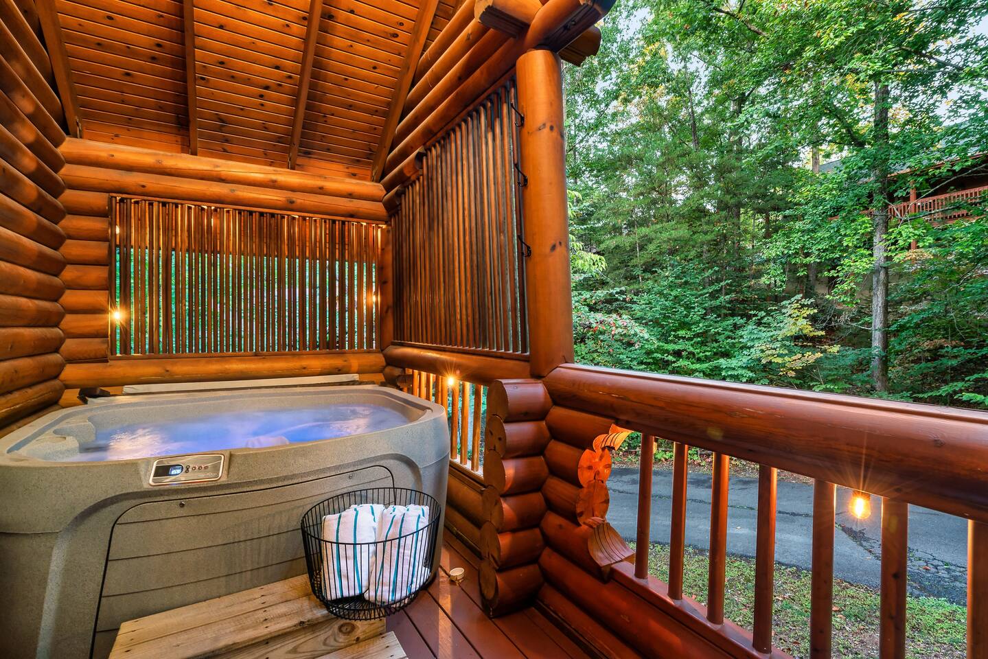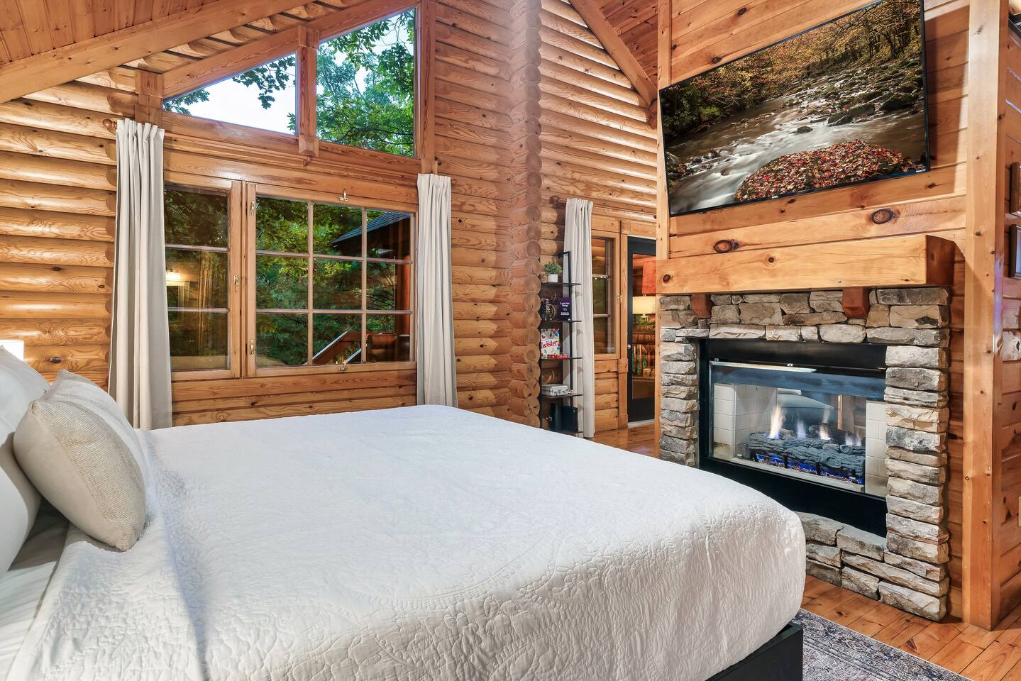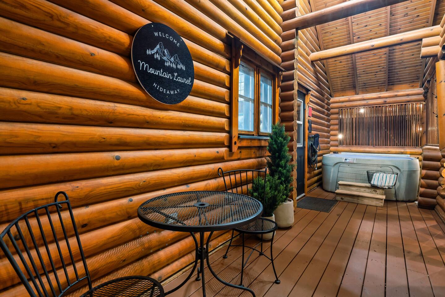 Escape to the perfect romantic getaway in our charming cabin (Mountain Laurel Hideaway), nestled among the trees, offering a delightful treehouse ambiance. Enjoy the serenity of nature while being just minutes away from local attractions! 1.3 miles to Parkway | 1.8 miles to The Island | 9 miles to Gatlinburg | 10 miles to National Park Entrance The space ★ LIVING ROOM ★ Charming dual-sided gas fireplace located in the heart of the studio cabin creating a perfect separation between the living room and sleeping area! 55’’ Big screen ROKU TV w/ access to all of your favorite streaming channels like Netflix, Hulu, Amazon Prime, Disney+, Max, and others for you to use with your own accounts Queen sofa sleeper with memory foam mattress (So Comfortable and sleeps 2) Couples date night games, playing cards, twister and more ★ THE DECKS★ 4-person hot tub Cafe table and chairs for outdoor dining or coffee Romantic seating area with fire table Deck lights on both decks for that perfect ambience Tree house vibes ★ KITCHEN & DINING ★ Fully equipped w/ Reverse osmosis fresh drinking water system, Keurig Duo single pod and drip coffee maker, french press, cooking utensils, pots and pans, dishes, mugs, glasses, wine cups, silverware, toaster, slow cooker, Ninja blender, tea kettle and 4-person dining table. Laundry closet w/ stackable washer and dryer ★ BEDROOM ★ King bed (Sleeps 2 Adults) 55’’ ROKU TV (same system and access as Living Room TV, (Provide your own passwords) Night stands with built in power and usb ports Blueair air purifier ★ BATHROOM ★ Stand-up shower and toilet are private and enclosed. Double vanity and soaker tub are located just outside the door. Hairdryer Double vanity mirrors Bath towels and wash cloths ★ Fireplace and fire table ★ Do not attempt to burn wood or any other combustable material in the gas fireplace or gas fire table. Do not attempt to cook food of any kind including (S'mores) on the fire table. This is a gas fire table for heat and ambiance only. Parking: Only ONE vehicle is permitted to park here during your stay. There is no space to park a long trailer/vehicle combo at the cabin. We do have daily bear activity. Please keep all doors locked to the cabin and never feed or leave food or trash out. During your stay, you will receive a one-time bed and bath linen set up as well as the start-up amenities listed below. These start-up amenities will not be replenished during your stay. Start-up amenities: toilet paper, paper towels, dishwashing liquid, dish soap, laundry detergent, kitchen sponge, 1 pack of ground coffee and a few K-cups. Cable TV NOT available.