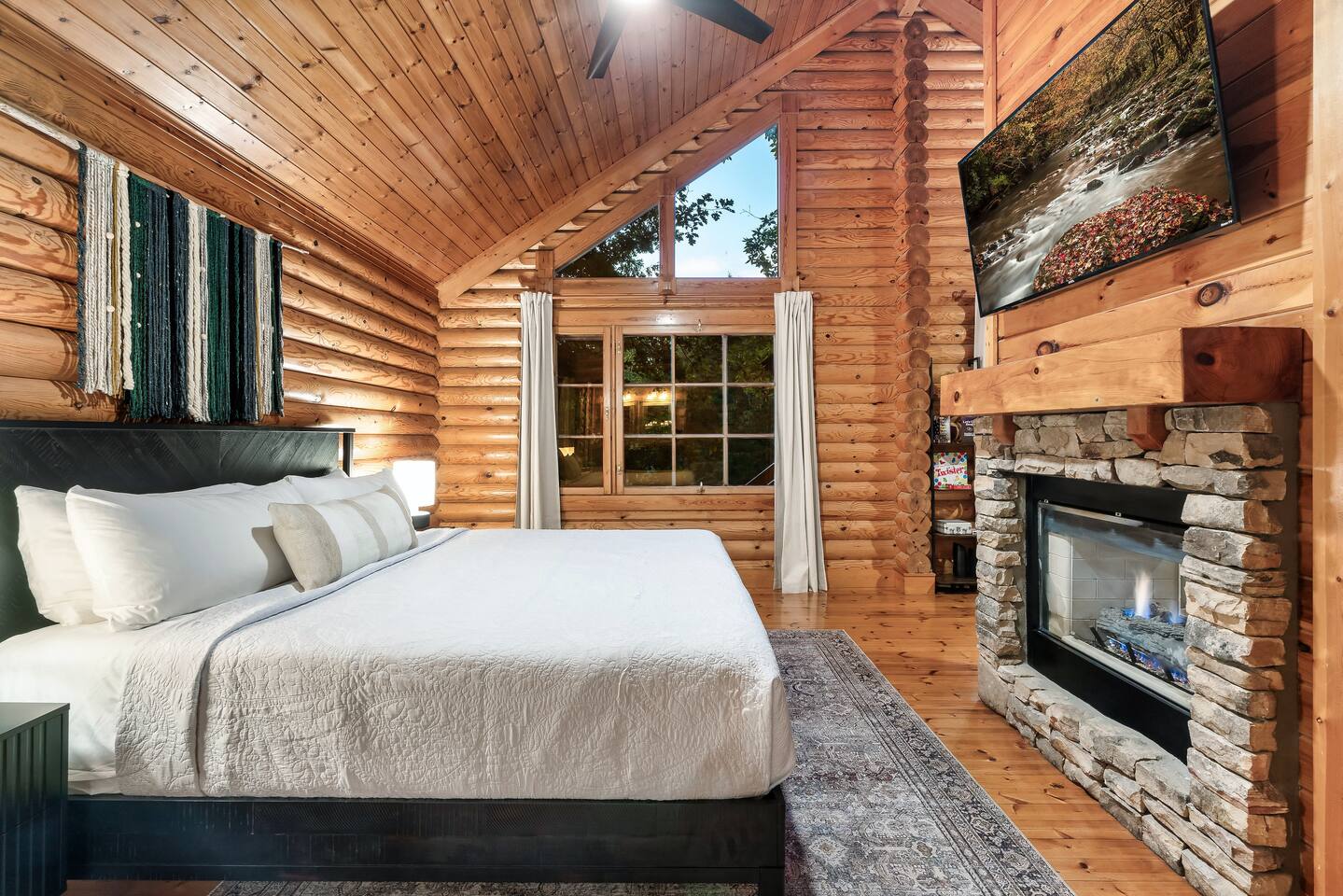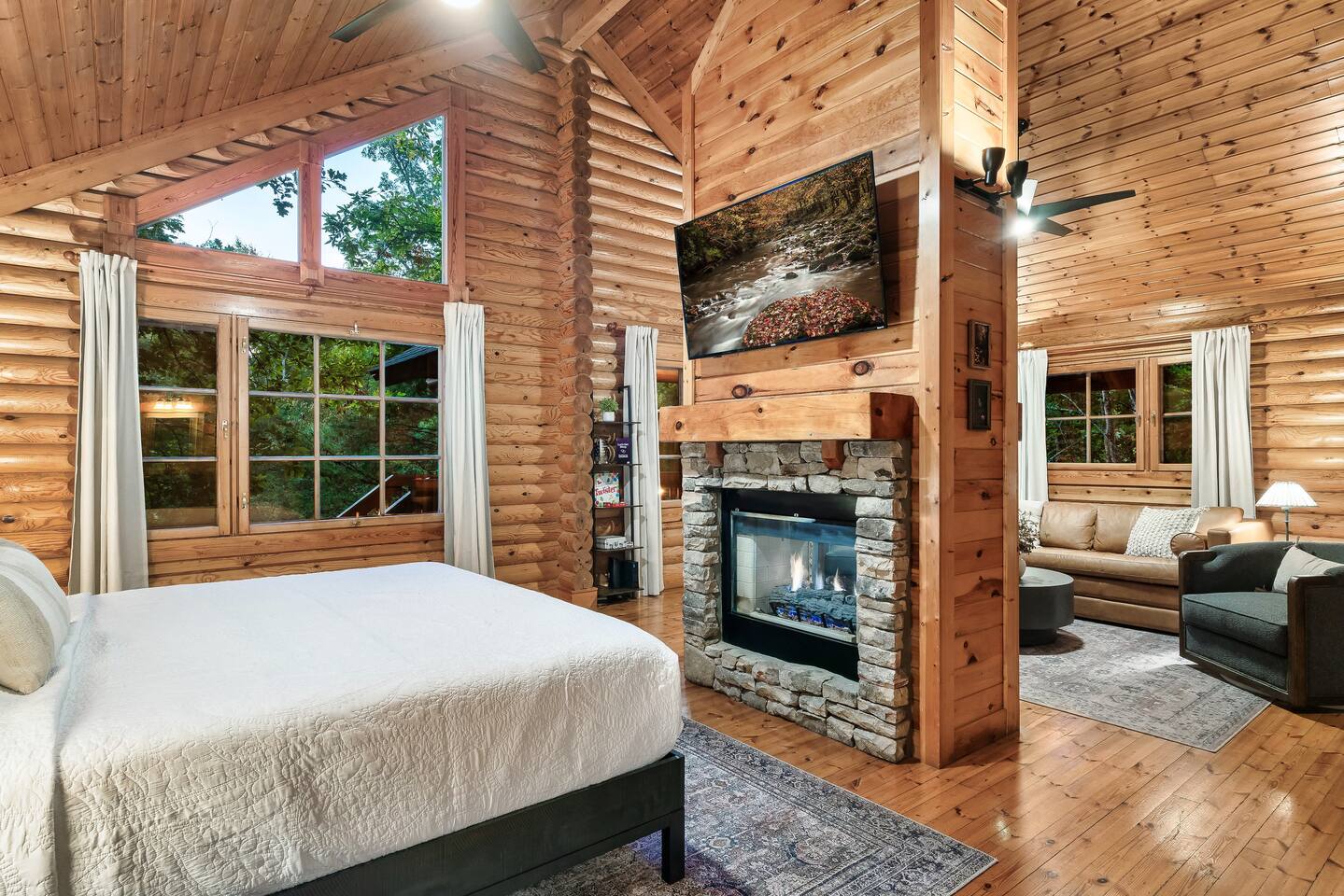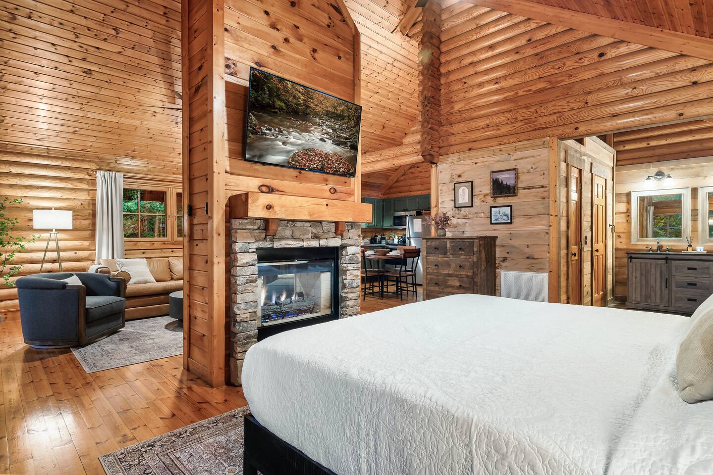Escape to the perfect romantic getaway in our charming cabin (Mountain Laurel Hideaway), nestled among the trees, offering a delightful treehouse ambiance. Enjoy the serenity of nature while being just minutes away from local attractions! 1.3 miles to Parkway | 1.8 miles to The Island | 9 miles to Gatlinburg | 10 miles to National Park Entrance The space ★ LIVING ROOM ★ Charming dual-sided gas fireplace located in the heart of the studio cabin creating a perfect separation between the living room and sleeping area! 55’’ Big screen ROKU TV w/ access to all of your favorite streaming channels like Netflix, Hulu, Amazon Prime, Disney+, Max, and others for you to use with your own accounts Queen sofa sleeper with memory foam mattress (So Comfortable and sleeps 2) Couples date night games, playing cards, twister and more ★ THE DECKS★ 4-person hot tub Cafe table and chairs for outdoor dining or coffee Romantic seating area with fire table Deck lights on both decks for that perfect ambience Tree house vibes ★ KITCHEN & DINING ★ Fully equipped w/ Reverse osmosis fresh drinking water system, Keurig Duo single pod and drip coffee maker, french press, cooking utensils, pots and pans, dishes, mugs, glasses, wine cups, silverware, toaster, slow cooker, Ninja blender, tea kettle and 4-person dining table. Laundry closet w/ stackable washer and dryer ★ BEDROOM ★ King bed (Sleeps 2 Adults) 55’’ ROKU TV (same system and access as Living Room TV, (Provide your own passwords) Night stands with built in power and usb ports Blueair air purifier ★ BATHROOM ★ Stand-up shower and toilet are private and enclosed. Double vanity and soaker tub are located just outside the door. Hairdryer Double vanity mirrors Bath towels and wash cloths ★ Fireplace and fire table ★ Do not attempt to burn wood or any other combustable material in the gas fireplace or gas fire table. Do not attempt to cook food of any kind including (S'mores) on the fire table. This is a gas fire table for heat and ambiance only. Parking: Only ONE vehicle is permitted to park here during your stay. There is no space to park a long trailer/vehicle combo at the cabin. We do have daily bear activity. Please keep all doors locked to the cabin and never feed or leave food or trash out. During your stay, you will receive a one-time bed and bath linen set up as well as the start-up amenities listed below. These start-up amenities will not be replenished during your stay. Start-up amenities: toilet paper, paper towels, dishwashing liquid, dish soap, laundry detergent, kitchen sponge, 1 pack of ground coffee and a few K-cups. Cable TV NOT available.