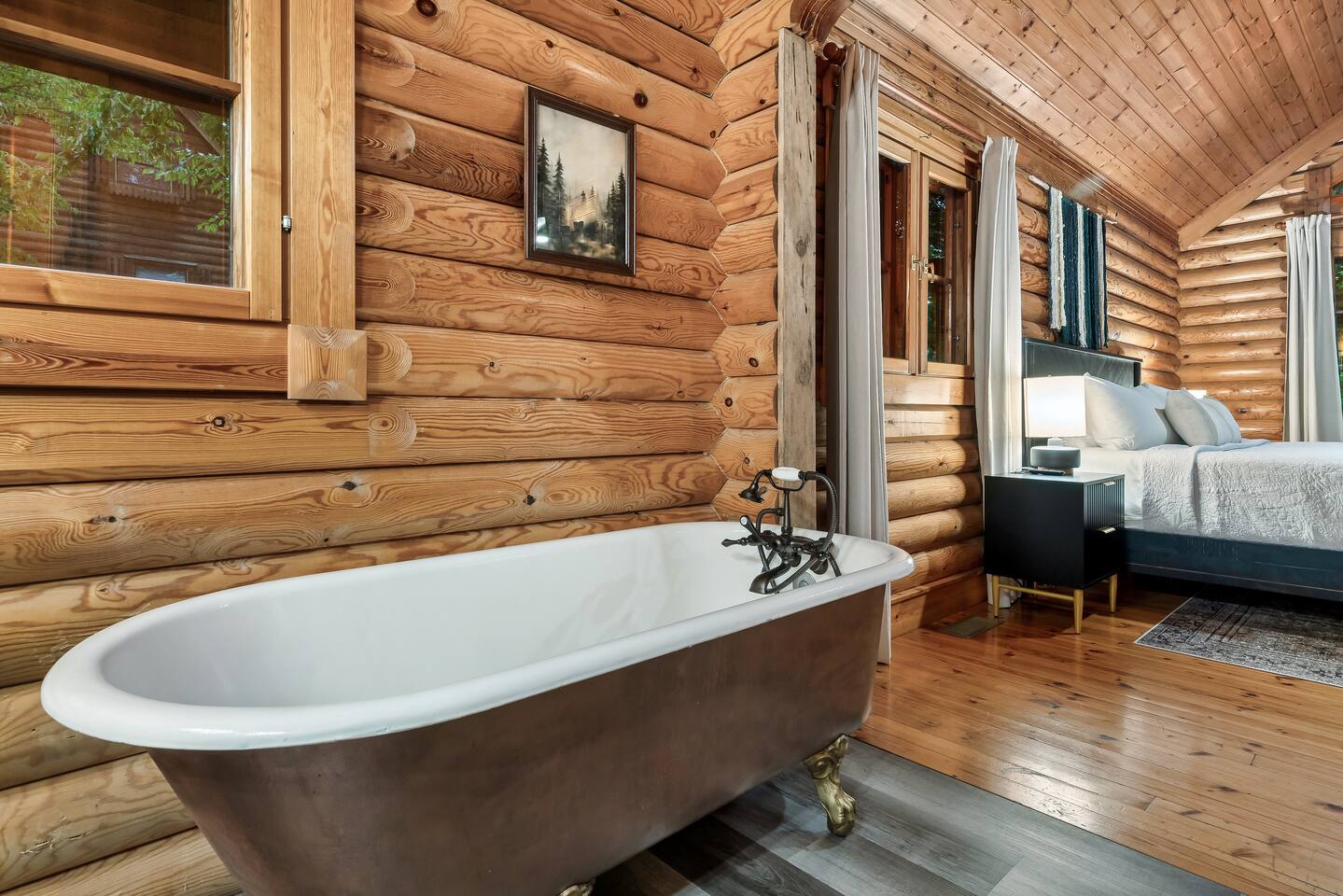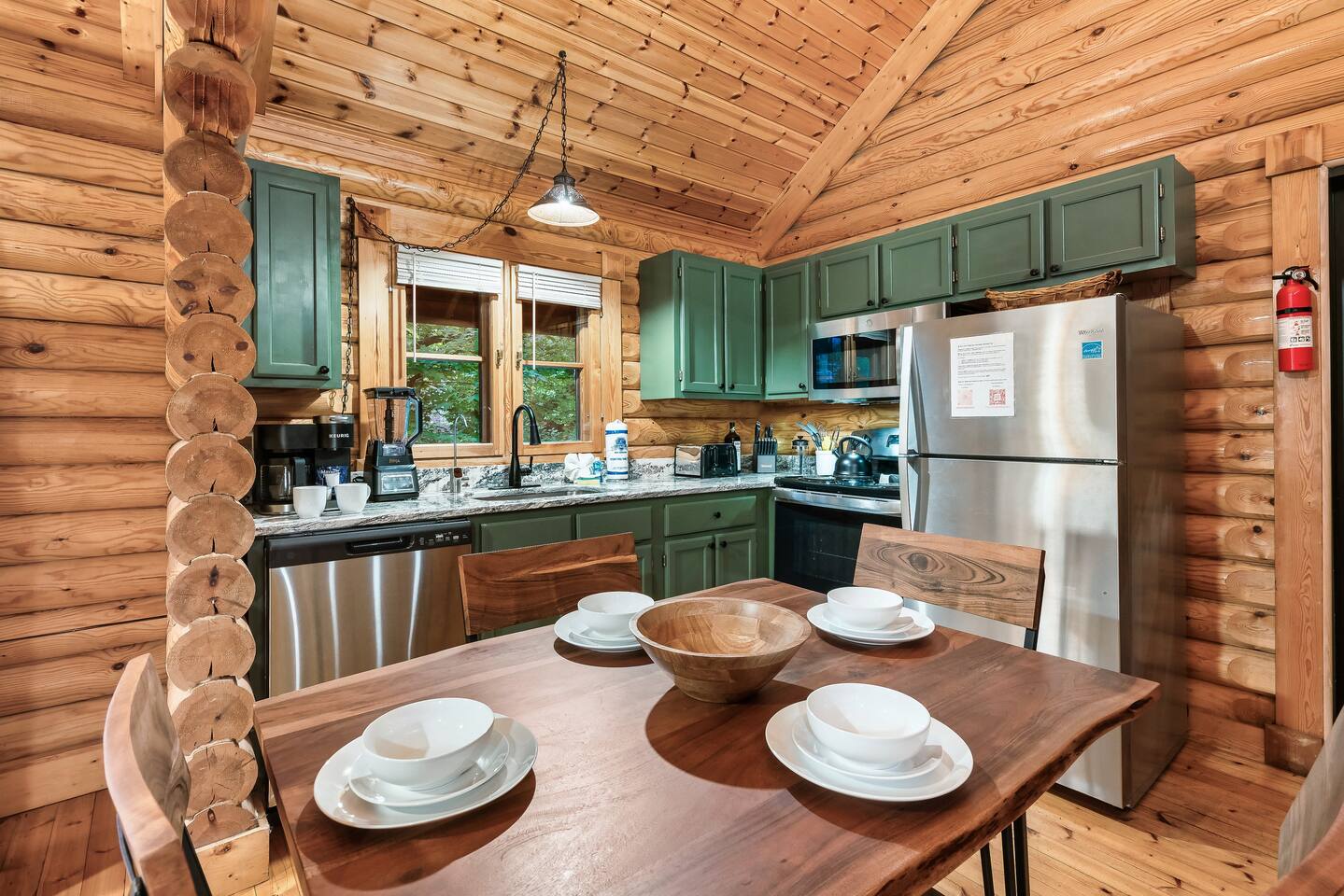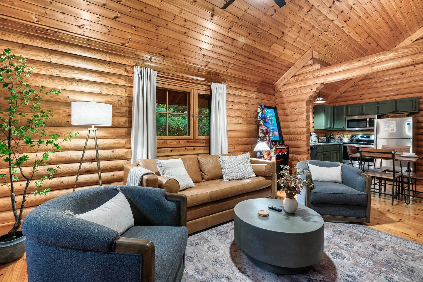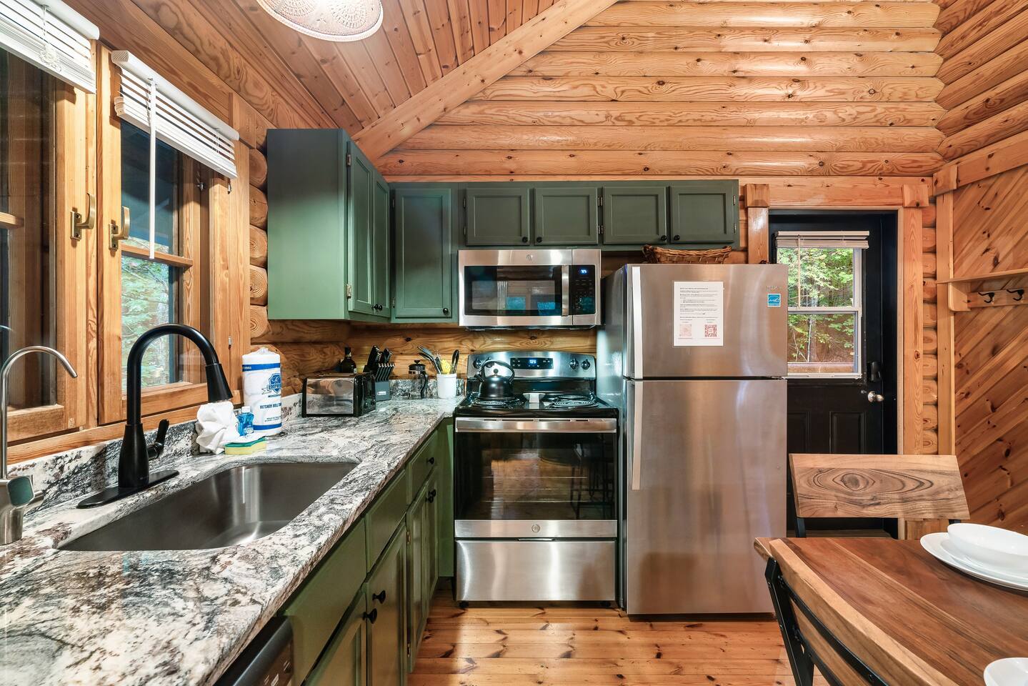 Escape to the perfect romantic getaway in our charming cabin (Mountain Laurel Hideaway), nestled among the trees, offering a delightful treehouse ambiance. Enjoy the serenity of nature while being just minutes away from local attractions! 1.3 miles to Parkway | 1.8 miles to The Island | 9 miles to Gatlinburg | 10 miles to National Park Entrance The space ★ LIVING ROOM ★ Charming dual-sided gas fireplace located in the heart of the studio cabin creating a perfect separation between the living room and sleeping area! 55’’ Big screen ROKU TV w/ access to all of your favorite streaming channels like Netflix, Hulu, Amazon Prime, Disney+, Max, and others for you to use with your own accounts Queen sofa sleeper with memory foam mattress (So Comfortable and sleeps 2) Couples date night games, playing cards, twister and more ★ THE DECKS★ 4-person hot tub Cafe table and chairs for outdoor dining or coffee Romantic seating area with fire table Deck lights on both decks for that perfect ambience Tree house vibes ★ KITCHEN & DINING ★ Fully equipped w/ Reverse osmosis fresh drinking water system, Keurig Duo single pod and drip coffee maker, french press, cooking utensils, pots and pans, dishes, mugs, glasses, wine cups, silverware, toaster, slow cooker, Ninja blender, tea kettle and 4-person dining table. Laundry closet w/ stackable washer and dryer ★ BEDROOM ★ King bed (Sleeps 2 Adults) 55’’ ROKU TV (same system and access as Living Room TV, (Provide your own passwords) Night stands with built in power and usb ports Blueair air purifier ★ BATHROOM ★ Stand-up shower and toilet are private and enclosed. Double vanity and soaker tub are located just outside the door. Hairdryer Double vanity mirrors Bath towels and wash cloths ★ Fireplace and fire table ★ Do not attempt to burn wood or any other combustable material in the gas fireplace or gas fire table. Do not attempt to cook food of any kind including (S'mores) on the fire table. This is a gas fire table for heat and ambiance only. Parking: Only ONE vehicle is permitted to park here during your stay. There is no space to park a long trailer/vehicle combo at the cabin. We do have daily bear activity. Please keep all doors locked to the cabin and never feed or leave food or trash out. During your stay, you will receive a one-time bed and bath linen set up as well as the start-up amenities listed below. These start-up amenities will not be replenished during your stay. Start-up amenities: toilet paper, paper towels, dishwashing liquid, dish soap, laundry detergent, kitchen sponge, 1 pack of ground coffee and a few K-cups. Cable TV NOT available.
